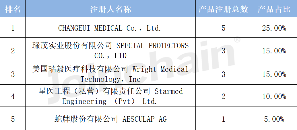 图表5 进口骨把持器所属注册人情况(TOP5)