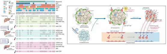 基于肝穿刺时空动态多组学研究,团队揭示了 CASTLE 方案的协同效应机制,其中康博刀 (R) 介导的冷冻消融发挥了 “免疫启动器” 的核心作用:
