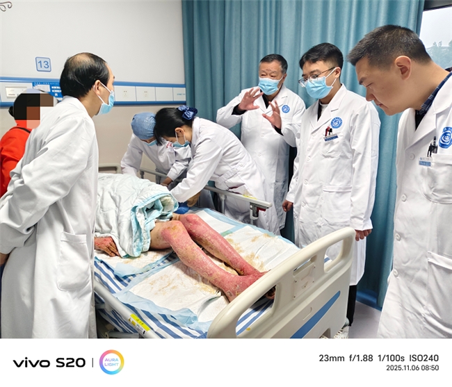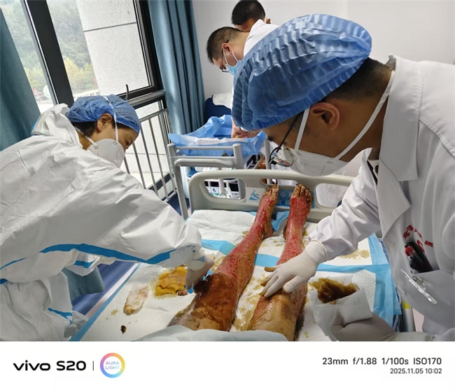 近日,广元市苍溪县人民医院收治一名42岁重度煤气烧伤患者,因病情复杂、创面感染风险极高,常规治疗难以应对。为抢抓黄金救治时间,医院紧急特邀四川省中西医结合学会烧伤与创面修复专委会副主任委员付子俊教授与四川省中西医结合医院高新院区急诊医学科主管护师刘颖组成专家团队,专程赴苍溪开展现场会诊与技术指导,以精湛医术为患者生命健康筑起“防护墙”。