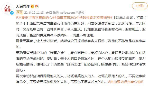 唐山打人事件在场者没有制止?人民网评:网暴无辜者,打错了靶子