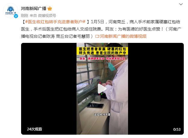 - 医生收红包转手充进患者账户 网友:点赞好医生!2023-01-06 17:55:29
